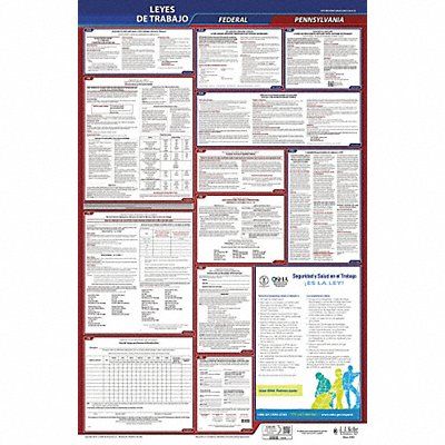Labor Law Poster Compliance Type Federal and State Labor Law FMLA Notice Included Not Applicable Height 40 in Language Spanish Material Plastic Number of Posters Included 1 Product Type Poster Subject Matter Labor Law Subscription Length 3 yr Width 24 in State/Province PA Municipality Not Applicable Workers Compensation Notice Included Not Applicable