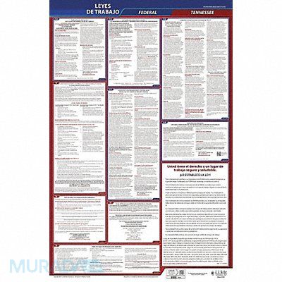 Labor Law Poster Compliance Type Federal and State Labor Law FMLA Notice Included Not Applicable Height 40 in Language Spanish Material Plastic Number of Posters Included 1 Product Type Poster Subject Matter Labor Law Subscription Length 3 yr Width 24 in State/Province TN Municipality Not Applicable Workers Compensation Notice Included Not Applicable