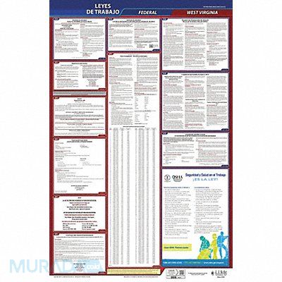 Labor Law Poster Compliance Type Federal and State Labor Law FMLA Notice Included Not Applicable Height 40 in Language Spanish Material Plastic Number of Posters Included 1 Product Type Poster Subject Matter Labor Law Subscription Length 3 yr Width 24 in State/Province WV Municipality Not Applicable Workers Compensation Notice Included Not Applicable