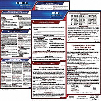 Labor Law Poster Compliance Type Federal and State Labor Law FMLA Notice Included Not Applicable Height 24 in Language Spanish Material Plastic Number of Posters Included 2 Product Type Poster Subject Matter Labor Law Subscription Length 1 yr Width 20 in State/Province UT Municipality Not Applicable Workers Compensation Notice Included Not Applicable