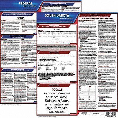 Labor Law Poster Compliance Type Federal and State Labor Law FMLA Notice Included Not Applicable Height 24 in Language Spanish Material Plastic Number of Posters Included 2 Product Type Poster Subject Matter Labor Law Subscription Length 3 yr Width 20 in State/Province SD Municipality Not Applicable Workers Compensation Notice Included Not Applicable
