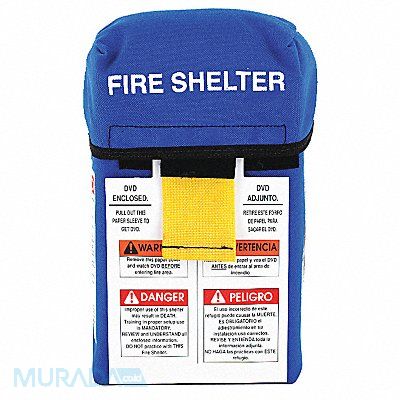 Fire Shelter Color Silver For Firefighter Size Up to 6 ft 1 in Tall and Girth Less Than 53 in Includes Blue Nylon Duck Carrying Case Instructional DVD Plastic Case Liner Open Height 15.5 in Open Length 86 in Open Width 31 in Size Regular Shelter Type Forest Fire Shelter Features Designed As A Last Resort Outer Shell Material Nylon Protects From Convective Heat Standards ISO-9001 USFS 5100-606