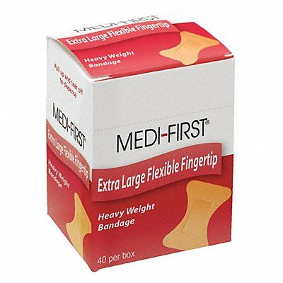 Fingertip Bandages Bandage Color Beige Bandage Material Fabric Length 3 in Width 1 3/4 in Metal Detectable No Water Resistant/Waterproof None Bandages Included 40 Package Quantity 40