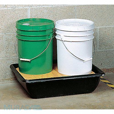 Pail Spill Containment Pallet Color Black Connectable No Dimensions 26 in L x 20 in W x 6 in H Height 6 in Includes 3/4 in Plywood Deck Includes Drain No Length 26 in Pour Spout No Product Type Containment Pallet Recycled Content ( Percent) No Recycled Content Spill Capacity 5.5 gal Supports SPCC Compliance No Tray Material High Density Polyethylene Width 20 in