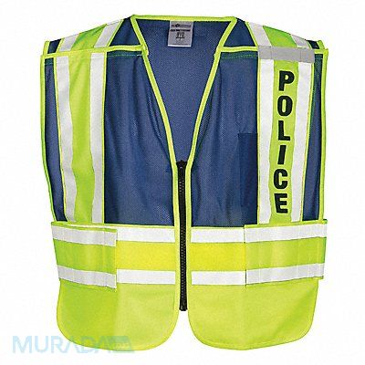 Safety Vest Blue Police Class 2 Type P Vest Size M/XL Vest Closure Type Zipper Vest Material Polyester Fits Chest Size 42 in to 60 in Vest Length 24 in Stripe Color Silver Standards ANSI 207-2006 Includes Left Chest Mic Tab