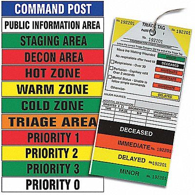 Incident Identification Kit Length 500 ft Rolls Width 3 in Rolls Polyethylene Multi Color Includes 100 Triage Tags (1) Command Post (1) Public Information Area (2) Triage Area (2) Priority 1 (2) Priority 2 (2) Priority 3 and (2) Priority 0 Barricade Tapes