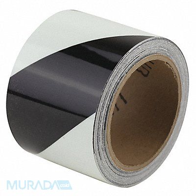 Floor Marking Tape Continuous Roll Striped Black/White 3 in 30 ft 11 mil Vinyl Grainger Approved(R) Legend No Legend Glow In The Dark Yes Retroreflective Grade Non-Reflective