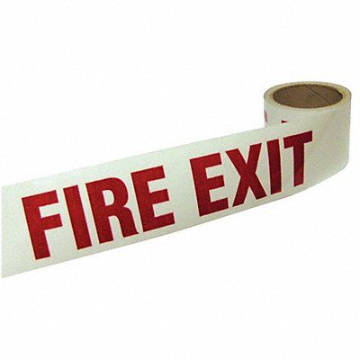 Floor Marking Tape Continuous Roll Message Red/White 3 in 15 ft 10 mil Vinyl Grainger Approved(R) Legend Fire Exit Message Color Red Glow In The Dark Yes Retroreflective Grade Non-Reflective