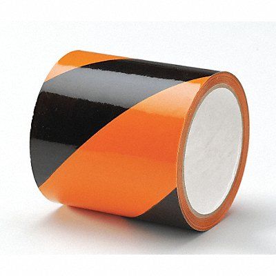 E7742 Floor Marking Tape Continuous Roll Striped Black/Orange 4 in 54 ft 7 mil Vinyl Grainger Approved(R) Legend No Legend Glow In The Dark No Retroreflective Grade Non-Reflective