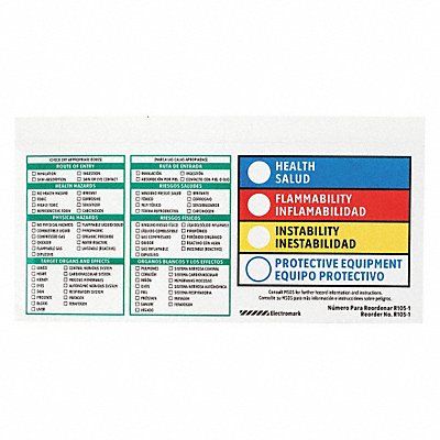 Label Adhesive Material Not Applicable Background Color Blue Red White Yellow Hazard Communication Standard HMIG Height 4 in Kit Contents Not Applicable Language English Material Paper Material Properties Not Applicable Preprinted Text HMIG Reactivity Product Type HMIG Label Standards Not Applicable Width 8 in Metal Detectable No Number of Labels 25 Package Quantity 25