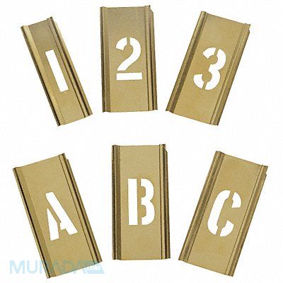 Stencil Character Type Letter/Number Set Duty Moderate FAA AC 150/5340-1K Compliant Not Applicable Font Not Applicable Included Characters Messages and Symbols A to Z Includes (92) Numbers Letters Individual Character Height 1 in Individual Character Width 1 in Interlocking No Interlocking Orientation Not Applicable Material Brass Message or Symbol Height Not Applicable Message or Symbol Width Not Applicable MUTCD Compliant Not Applicable Number of Pieces 92