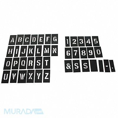 Stencil Kit Character Type Letter/Number Set Duty Light FAA AC 150/5340-1K Compliant Not Applicable Font Not Applicable Included Characters Messages and Symbols 0 to 9 A to Z Punctuation Includes (3) Ampersand (3) Dash (-) (3) Dollar Sign ($) (3) Large Spacers (3) Period (.) (3) Small Spacers (30) Numbers (90) Letters Sign Individual Character Height 1 in Individual Character Width Not Applicable Interlocking Yes Interlocking Orientation Not Applicable Material Brass