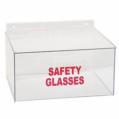 Safety Glasses Dispenser Capacity 20 Pairs Center-to-Center Mounting Hole Spacing 9 1/4 in Color Clear Dispenser Contains Glasses Goggles Dispenser Features Large Capacity Dispenser Layout 1 Compartment Dispenser Orientation Horizontal Dispenser Style Tray Dispensing Method Hinged Lid Material Polyethylene Message Safety Glasses Mounting Location Wall Tabletop Countertop Number of Compartments 1 Overall Depth 9 1/2 in Overall Height 7 in Overall Width 11 1/2 in