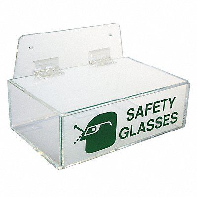 Eyewear Dispenser Capacity 6 Pairs Center-to-Center Mounting Hole Spacing 6 in Color Clear Dispenser Contains Eye Shields Glasses Goggles Dispenser Layout 1 Box Dispenser Orientation Horizontal Dispenser Style Tray Dispensing Method Hinged Lid Includes Sponge Cushion Material Acrylic Mounting Location Wall Tabletop Cabinet Countertop Semi-Recessed Wall Overall Depth 6 in Overall Height 5 7/8 in Overall Width 9 in