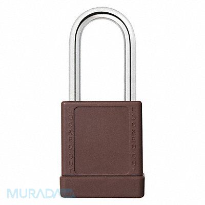 J5181 Lockout Padlock Body Color Brown Body Height 2 in Body Material Aluminum Body Thickness 25/32 in Body Width 1 5/16 in Header None/No Header Key Type Keyed Different Shackle Diameter 7/32 in Shackle Height 1 1/2 in Shackle Material Hardened Steel Shackle Type Open Width Across Shackle 3/4 in Includes English Lockout Labels French Lockout Labels Spanish Lockout Labels Labeling Label Included Language English French Spanish Legend Danger Locked Out Package Quantity 6