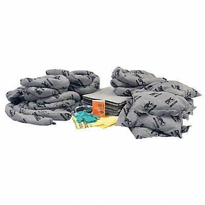 Spill Kit Refill Fluids Absorbed Universal Volume Absorbed Per Kit 36 gal Container Type Refill 30 gal Container Capacity Filled Sorbents Included (25) 15 in W x 19 in L Pads (6) 3 in x 12 ft Socks (6) 9 in L x 9 in W Pillows PPE Included Goggles Nitrile Gloves Additional Components Included (3) Disposal Bags Handbook Includes Mounting Fasteners No EPA 40 CFR 112.7(c)(1)(vii) OSHA 29 CFR 1910.120(j)(1)(vii) OSHA 29 CFR 1910.22(a)(2) Land Fill Disposable No