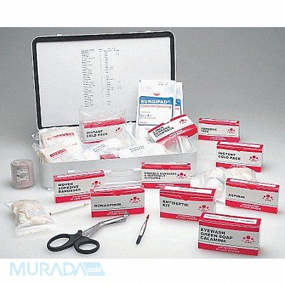First Aid Kit Kit First Aid Kit Primary Application General Purpose Unitized No People Served per Kit 25 Case Material Steel First Aid Kit Mounting Type Portable Wall Mount Height 9.5 in Width 14.13 in Depth 3.25 in Waterproof Yes First Aid Kit Application General Purpose Number of Components 30 Number of Shelves 1 White Not ANSI Compliant