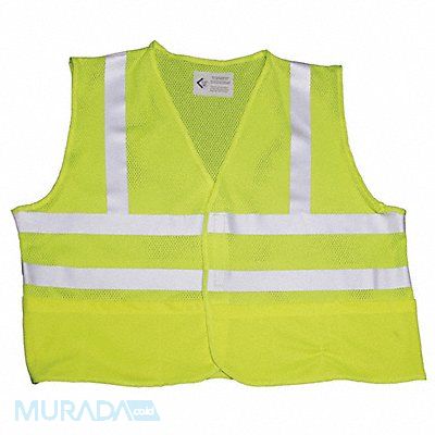 K4642 High-Visibility Vest ANSI Class 2 Vest Size L Traffic Safety Vest Color Yellow/Green Fits Chest Size 40 in to 44 in Gender Men s Stripe Color Silver Vest Material Polyester Mesh Vest Closure Type Hook-and-Loop ATPV Rating Not Rated Hazard Risk Category (HRC) 2 Vest Stripe Color Family Silver Back Stripe Pattern U Vest Length 25 in Number of Pockets (Inside) 0 Number of Pockets (Outside) 12 Number of Pockets with Closure 0