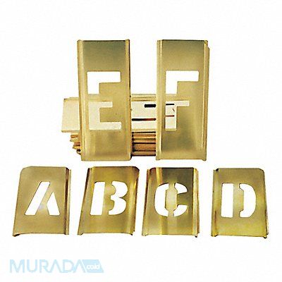 Stencil Kit Character Type Letter/Number Set Duty Heavy FAA AC 150/5340-1K Compliant No Font Gothic Included Characters Messages and Symbols 0 to 9 A to Z Ampersand Apostrophe ( ) Comma End Pieces Period (.) Spacers Includes (1) A to Z 0 to 9 Comma (2) Spacer (3) End Piece Period (.) Ampersand Apostrophe ( ) Individual Character Height 1/2 in Individual Character Width 1 in Interlocking Yes Material Brass Message or Symbol Height Not Applicable