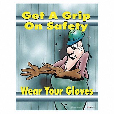 Safety Poster Shape Vertical Rectangle Safety Banner Legend Get A Grip On Safety Wear Your Gloves Sign Legend Style Symbol and Text Printed Language English Background Color Various Number of Printed Sides 1 Width 17 in Height 22 in Thickness 0.005 in