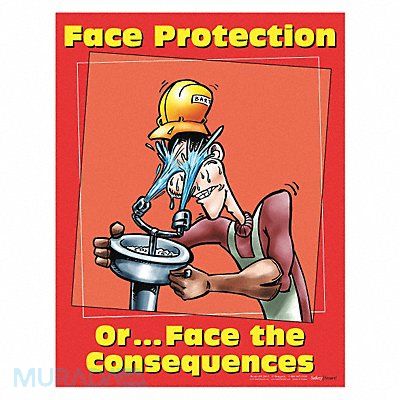 Safety Poster Shape Vertical Rectangle Safety Banner Legend Face Protection Or Face The Consequences Sign Legend Style Symbol and Text Printed Language English Background Color Various Number of Printed Sides 1 Width 17 in Height 22 in Thickness 0.005 in