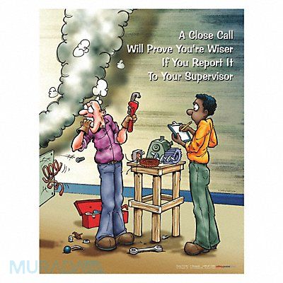 Safety Poster Shape Vertical Rectangle Safety Banner Legend A Close Call Will Prove Youre Wiser If You Report It To Your Supervisor Sign Legend Style Symbol and Text Printed Language English Background Color Various Number of Printed Sides 1 Width 17 in Height 22 in Thickness 0.005 in