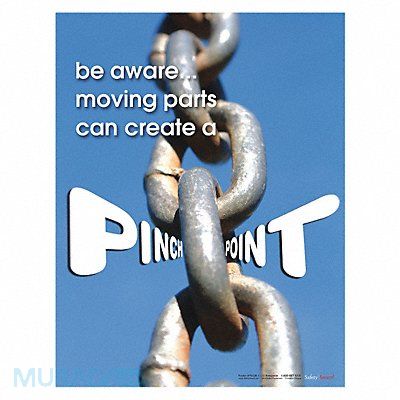 Safety Poster Shape Vertical Rectangle Safety Banner Legend Be Aware Moving Parts Can Create A Pinchpoint Sign Legend Style Symbol and Text Printed Language English Background Color Various Number of Printed Sides 1 Width 17 in Height 22 in Thickness 0.005 in
