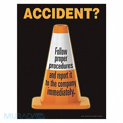 Safety Poster Shape Vertical Rectangle Safety Banner Legend Accident Follow Proper Procedures And Report It To The Company Immediately Sign Legend Style Symbol and Text Printed Language English Background Color Various Number of Printed Sides 1 Width 17 in Height 22 in Thickness 0.005 in