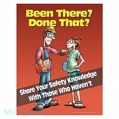 Safety Poster Shape Vertical Rectangle Safety Banner Legend Been There Done That Share Your Safety Knowledge With Those Who Havent Sign Legend Style Symbol and Text Printed Language English Background Color Various Number of Printed Sides 1 Width 17 in Height 22 in Thickness 0.005 in