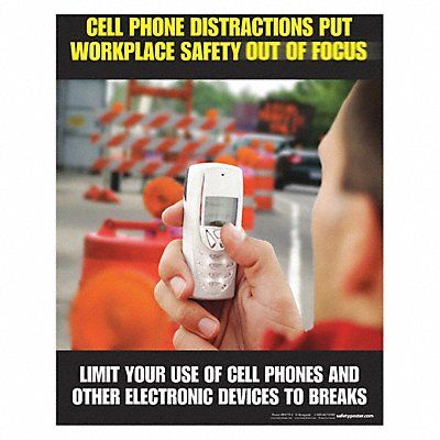 Safety Poster Shape Vertical Rectangle Safety Banner Legend Cell Phone Distractions Put Workplace Safety Out Of Focus Sign Legend Style Symbol and Text Printed Language English Background Color Various Number of Printed Sides 1 Width 17 in Height 22 in Thickness 0.005 in