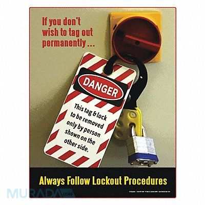 Safety Poster Shape Vertical Rectangle Safety Banner Legend If You Dont Wish To Tag Out Permanently... Always Follow Lockout Procedures Sign Legend Style Symbol and Text Printed Language English Background Color Various Number of Printed Sides 1 Width 17 in Height 22 in Thickness 0.005 in