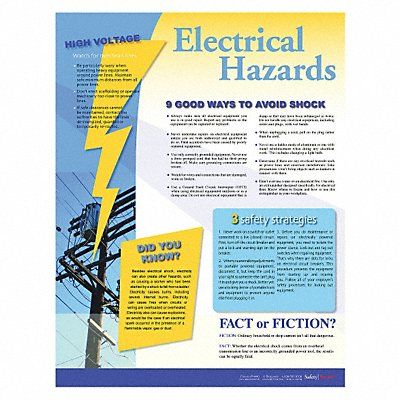 Safety Poster Shape Vertical Rectangle Safety Banner Legend Electrical Hazards Sign Legend Style Symbol and Text Printed Language English Background Color Various Number of Printed Sides 1 Width 17 in Height 22 in Thickness 0.005 in