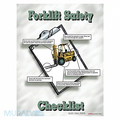 Safety Poster Shape Vertical Rectangle Safety Banner Legend Forklift Safety Checklist Sign Legend Style Symbol and Text Printed Language English Background Color Various Number of Printed Sides 1 Width 17 in Height 22 in Thickness 0.005 in