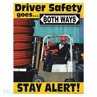 Safety Poster Shape Vertical Rectangle Safety Banner Legend Driver Safety Goes Both Ways Stay Alert Sign Legend Style Symbol and Text Printed Language English Background Color Various Number of Printed Sides 1 Width 17 in Height 22 in Thickness 0.005 in