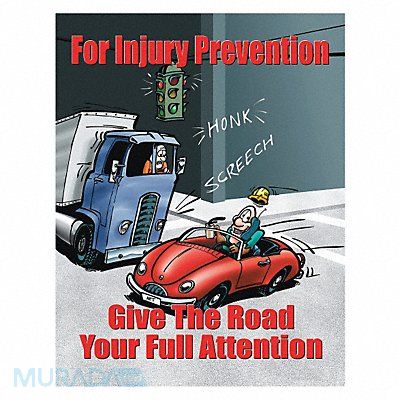 Safety Poster Shape Vertical Rectangle Safety Banner Legend For Injury Prevention Give The Road Your Full Attention Sign Legend Style Symbol and Text Printed Language English Background Color Various Number of Printed Sides 1 Width 17 in Height 22 in Thickness 0.005 in