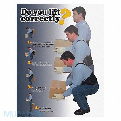 Safety Poster Shape Vertical Rectangle Safety Banner Legend Do You Lift Correctly Sign Legend Style Symbol and Text Printed Language English Background Color Various Number of Printed Sides 1 Width 17 in Height 22 in Thickness 0.005 in