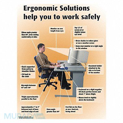Safety Poster Shape Vertical Rectangle Safety Banner Legend Ergonomic Solutions Help You To Work Safely Sign Legend Style Symbol and Text Printed Language English Background Color Various Number of Printed Sides 1 Width 17 in Height 22 in Thickness 0.005 in