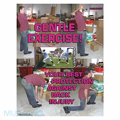 Safety Poster Shape Vertical Rectangle Safety Banner Legend Gentle Exercise Your Best Protection Against Back Injury Sign Legend Style Symbol and Text Printed Language English Background Color Various Number of Printed Sides 1 Width 17 in Height 22 in Thickness 0.005 in