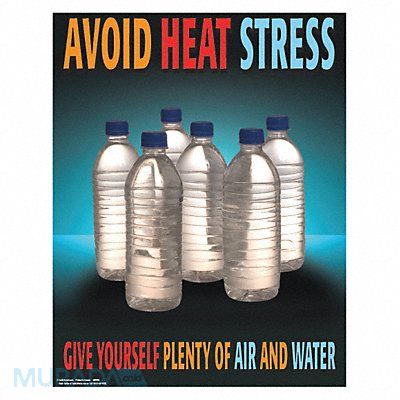 Safety Poster Shape Vertical Rectangle Safety Banner Legend Avoid Heat Stress Give Yourself Plenty Of Air And Water Sign Legend Style Symbol and Text Printed Language English Background Color Various Number of Printed Sides 1 Width 17 in Height 22 in Thickness 0.005 in