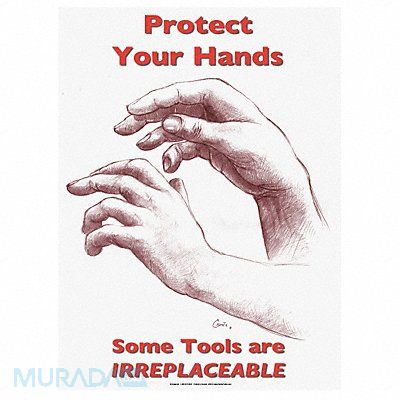 Safety Poster Shape Vertical Rectangle Safety Banner Legend Protect Your Hands Some Tools Are Irreplaceable Sign Legend Style Symbol and Text Printed Language English Background Color Various Number of Printed Sides 1 Width 17 in Height 22 in Thickness 0.005 in
