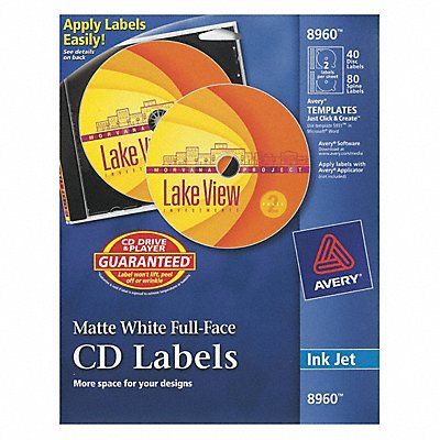 Precut Label Sheet For Print Method Inkjet Label Color White Label Finish Matte Label Height 4 5/8 in Label Material Paper Label Width 4 5/8 in Sheet Length 11 in Sheet Size 8 1/2 in x 11 in Sheet Width 8 1/2 in Adhesive Adhesive Application Compact Disks DVDs Jewel Cases Label Media Format Precut Sheet Package Quantity 40