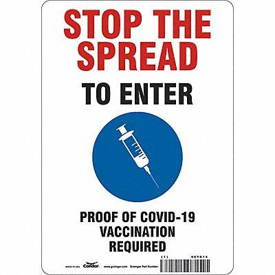 Employee/Visitor Vaccine Proof Sign Height 10 in Width 7 in Sign Material Aluminum Header Stop The Spread Legend To Enter Proof Of COVID-19 Vaccination Required Printed Language English