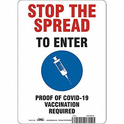 Employee/Visitor Vaccine Proof Sign Height 14 in Width 10 in Sign Material Vinyl Header Stop The Spread Legend To Enter Proof Of COVID-19 Vaccination Required Printed Language English