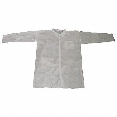 G6098 Disposable Lab Coat Closure Type Button Collar Style Mandarin Color White Cuff Style Open Gender Unisex Launderable No Material Polypropylene Maximum Height 81 in Minimum Height 78 3/4 in Number of Pockets 2 Overall Length 45 1/2 in Packaging Bulk Pattern Solid Protection Type Liquid Particulate Seam Style Serged Size 4XL Standards FDA Sterile/Non-Sterile Non-Sterile Attached Hood No Maximum Chest Size 55 in Wrist Closure Open Anti-Static No Brand and Series Condor