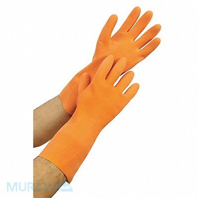 J4885 Chemical Resistant Gloves Natural Rubber Latex Palm and Fingers 29 mil 13 in Cuff Straight Lining Flock Glove Size 7 Color Orange Unsupported Standards Complies with FDA 21 CFR 177.2600 for Food Contact ANSI Resists Acids Alkalies Detergents and Fats. Offers good Chemical Ketones Puncture and Abrasion Resistance Salts Tear 1 Pair