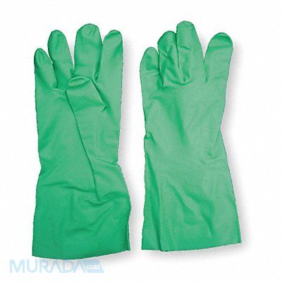 Chemical Resistant Gloves Nitrile Palm and Fingers 11.00 mil 13 in Cuff Straight Lining Unlined Glove Size 10 Color Green Unsupported Standards USDA FDA 21 CFR Resists Solvents Animal Fats and Other Chemicals 1 Pair