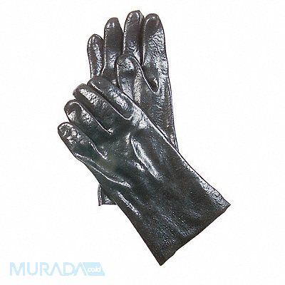 Chemical Resistant Gloves PVC 12 in Cuff Gauntlet Lining Interlock Knit Glove Size L Color Black Resists Resistant to Most Oils Acids Fats Caustics and Petroleum Hydrocarbons 1 Pair