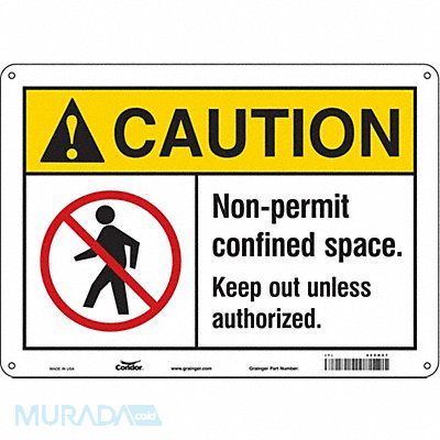J8714 Safety Sign Horizontal Rectangle Number of Printed Sides 1 English Sign Format ANSI/OSHA Format Sign Legend Non-Permit Confined Space. Keep Out Unless Authorized. Sign Legend Background Color White Sign Legend Style Symbol and Text