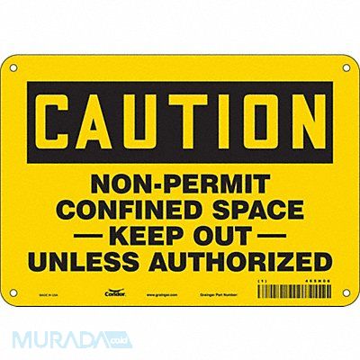 J8712 Safety Sign Vertical Rectangle Number of Printed Sides 1 English Sign Format Traditional OSHA Sign Legend Non-Permit Confined Space -Keep Out- Unless Authorized Sign Legend Background Color Yellow Sign Legend Style Text
