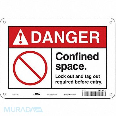 J8724 Safety Sign Vertical Rectangle Number of Printed Sides 1 English Sign Format ANSI/OSHA Format Sign Legend Confined Space. Lock Out And Tag Out Required Before Entry. Sign Legend Background Color White Sign Legend Style Symbol and Text